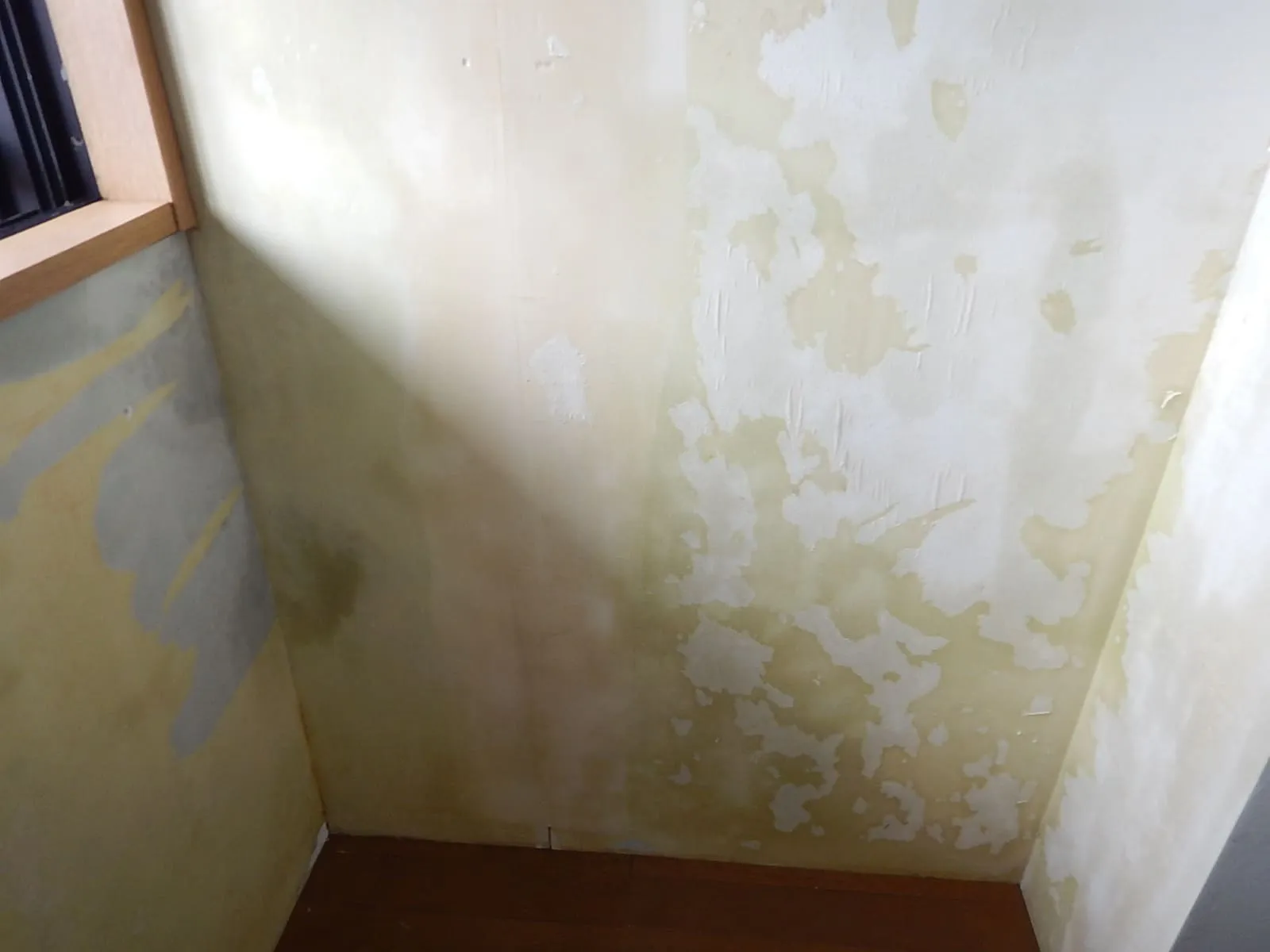 戸建住宅の漏水事故後に残るカビ、