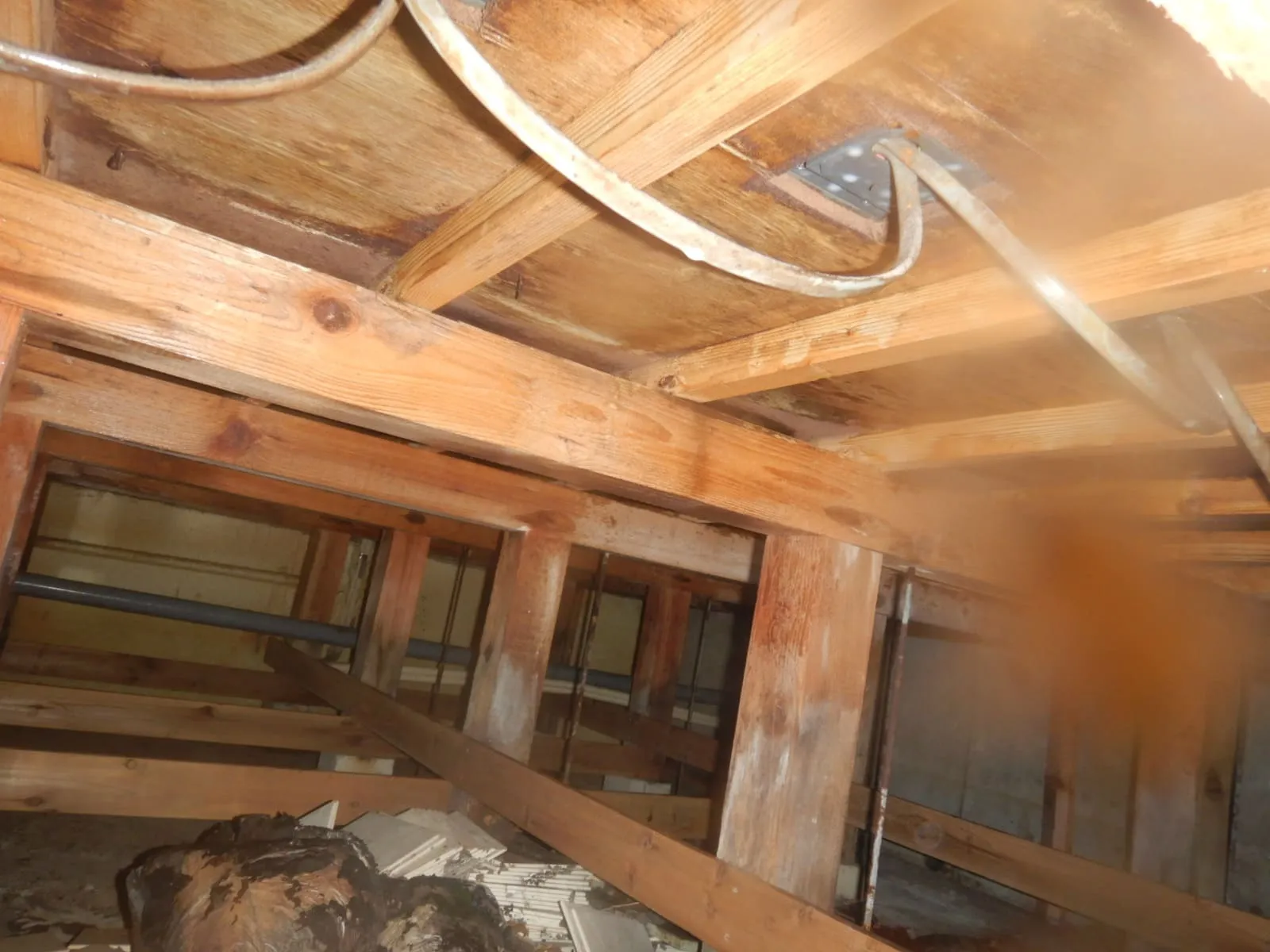 結果、一番ひどい場所を最優先で行います。この時は「和室」でしたので、床下分割防カビ工事はスタートすることになります。カビ取り作業で手間取ります。カビの繁殖状況が酷いとカビ取りだけで1日でも終わらない事例も過去にはありました。(過去例で言うと、10帖洋室の床下カビ取り作業で2日罹った事例もあります。下記に写真を載せていますので参照ください)ということで、カビ取り2日間・殺菌消毒と防カビ施工で1日と計3日間かかることになります。一括工事では時間がありませんので、どうしても粗い工事になってしまいがちです。それを粗い工事を防ぐための「分割防カビ工事」だとお考えください。