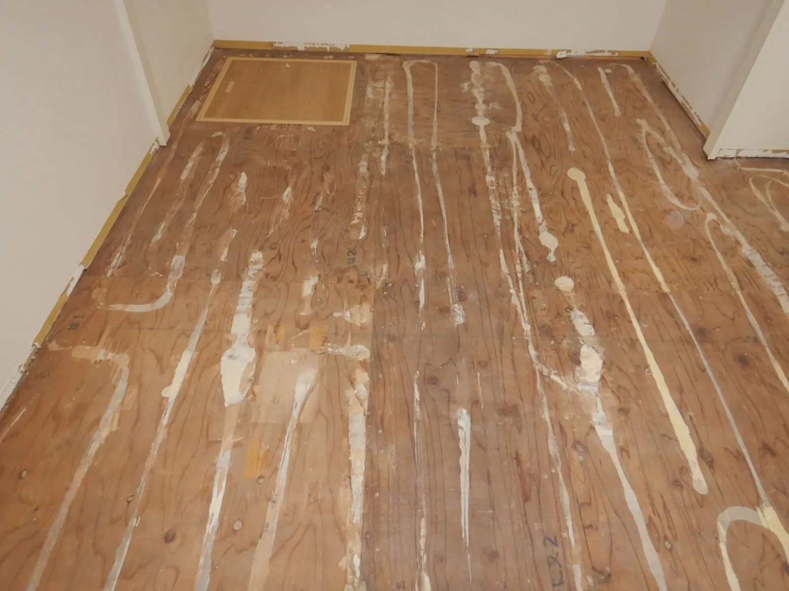 建築会社はやむなく 2部屋と廊下のフローリング・巾木をすべて剥がす大掛かりな工事 に着手。
