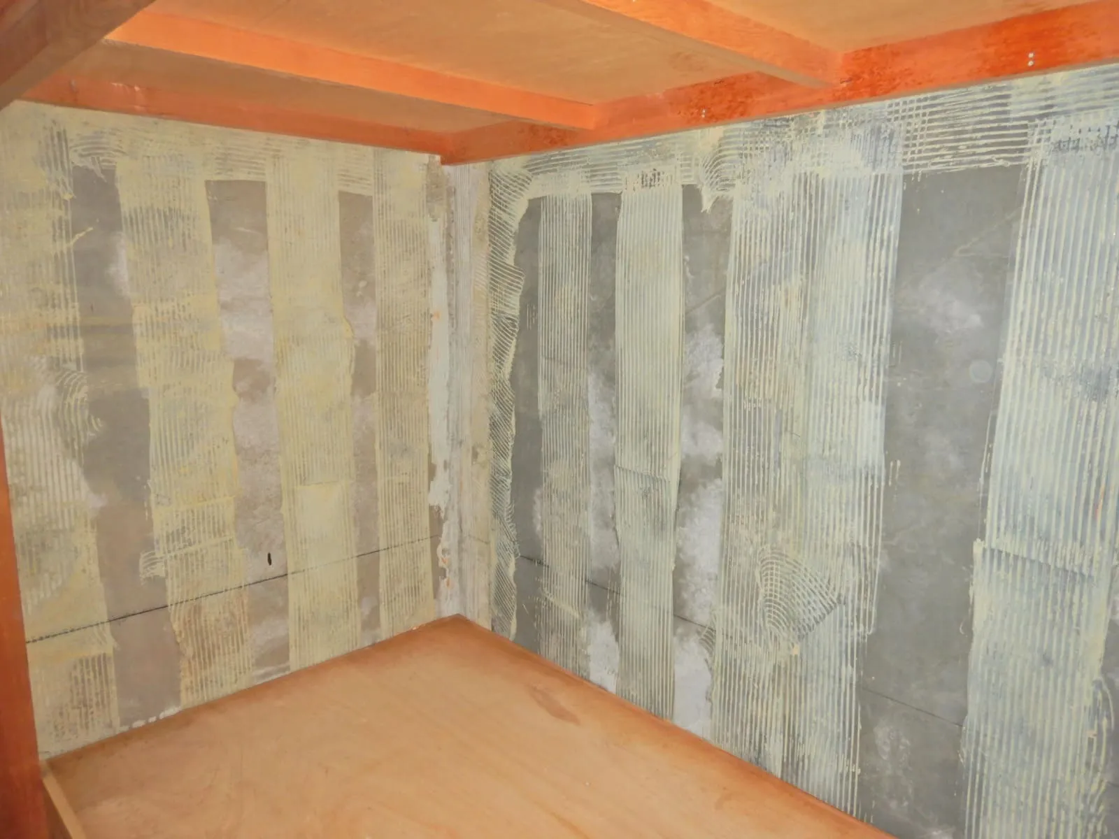 収納やクローゼット内部に「断熱ベニア」を接着剤で貼る例を見かけます。
