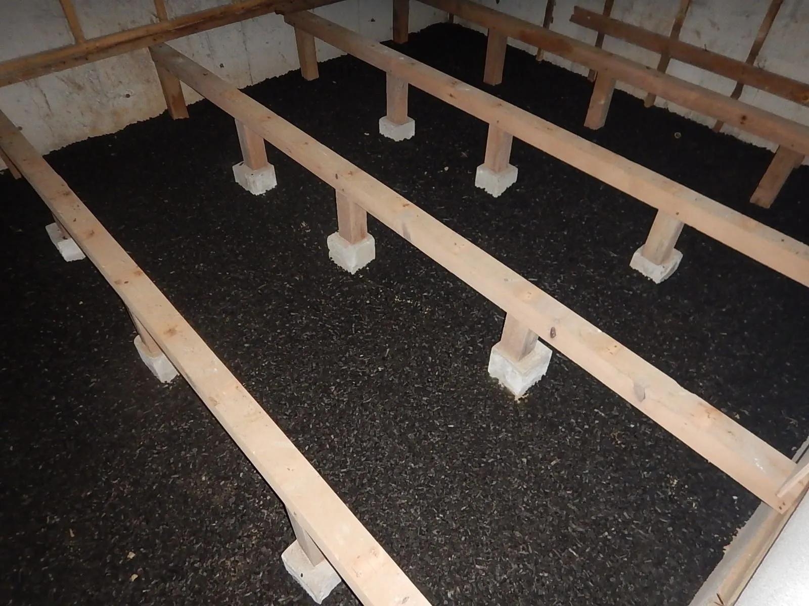 📷写真は、解体した後の最低限の敷炭です。焼成粉砕竹炭を厚み5~6cm程度敷き詰めるのがコツ。