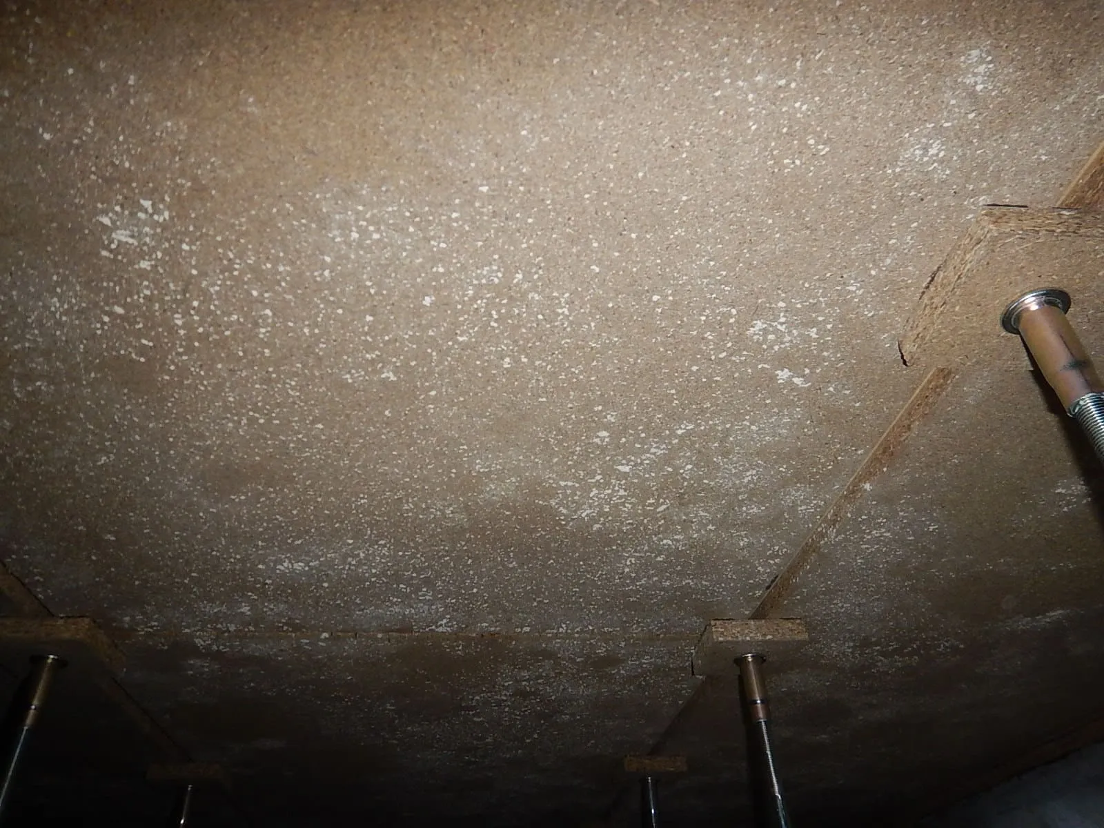 数年前、ある戸建住宅の床下で、パーティクルボード全面に白カビが発生。