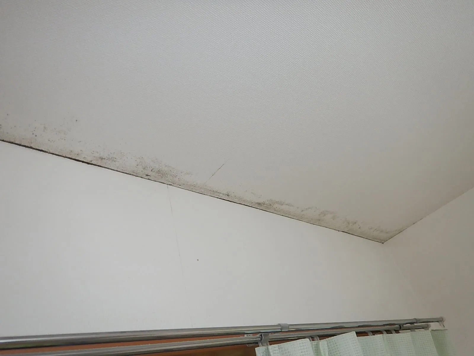 天井の隅やカーテンレール上などに黒カビが出ている場合、実は壁や天井の内部で結露が起きているサインです。