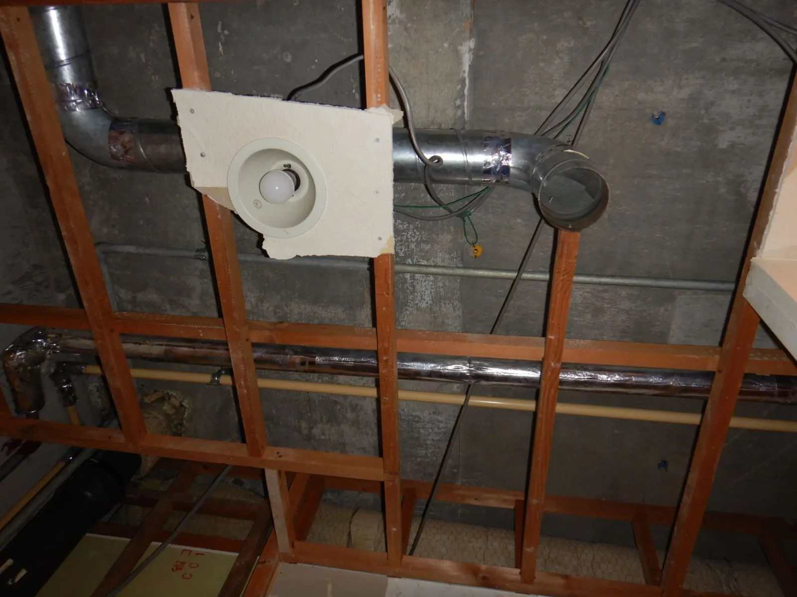 📷写真は、漏水事故後スケルトン状態にした上でのコンクリートスラブ防カビ工事。
