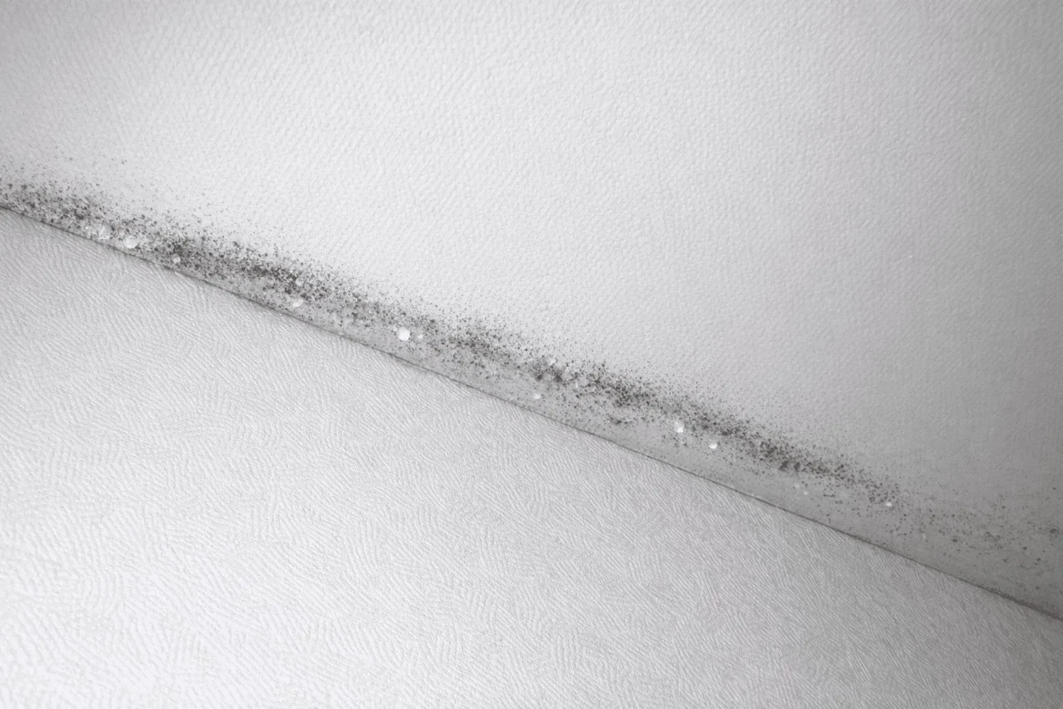 天井コンクリート直張り壁紙の結露と黒カビのイメージ画像です。
