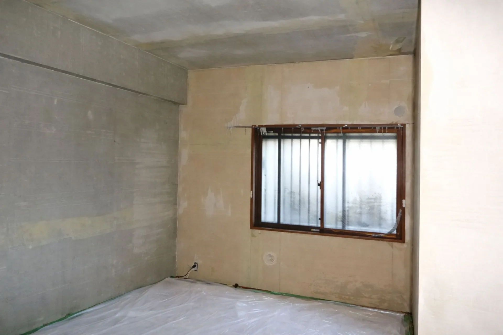 壁紙下地に防カビ工事を行い、
