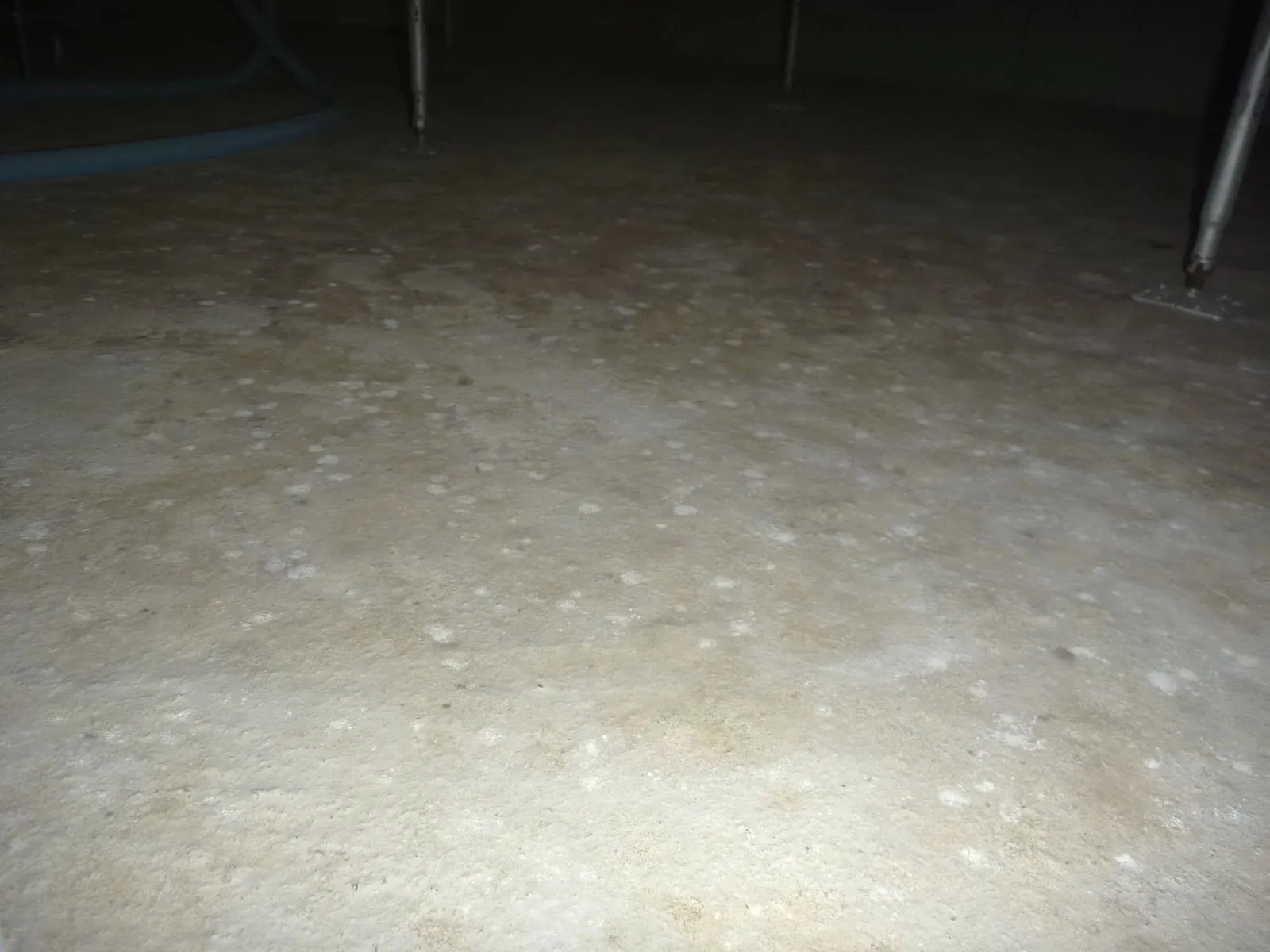 📷写真は、水抜き乾燥後に発見されるコンクリートスラブカビです。