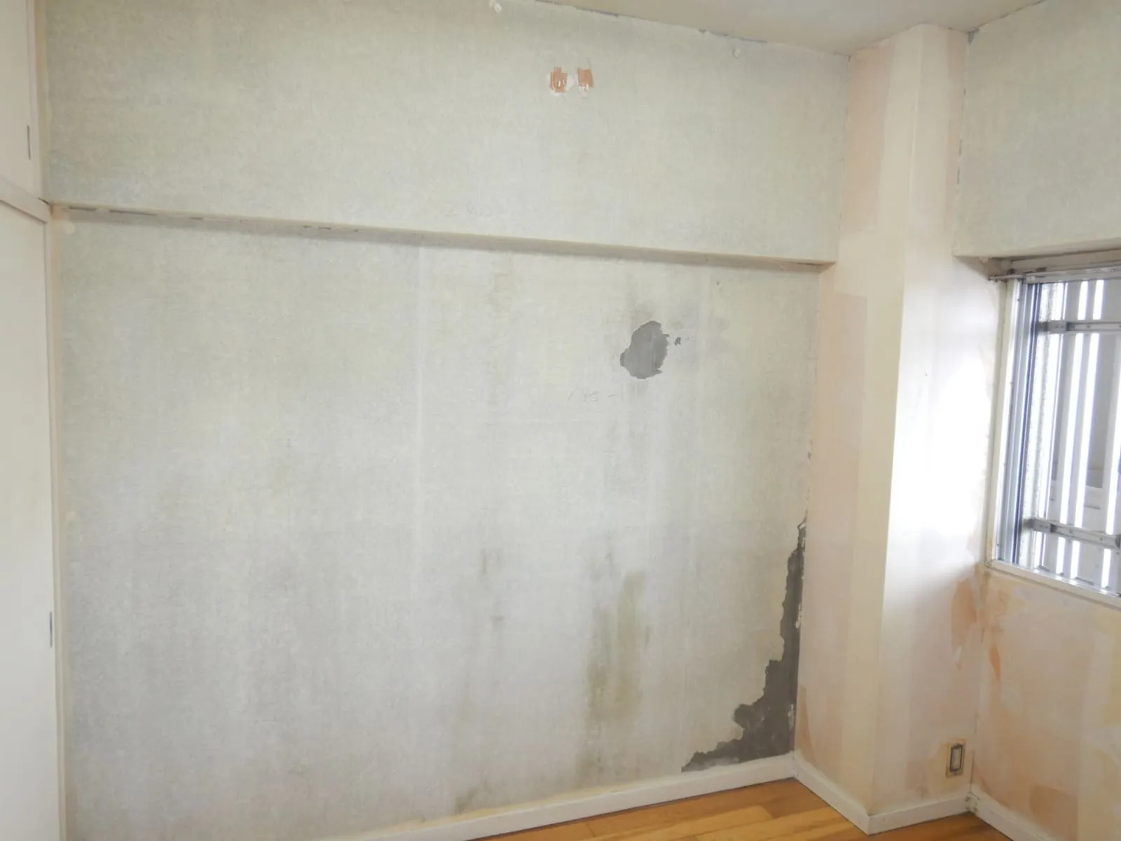 📷写真は、前述の壁紙を剥がし、防カビ工事後になります。