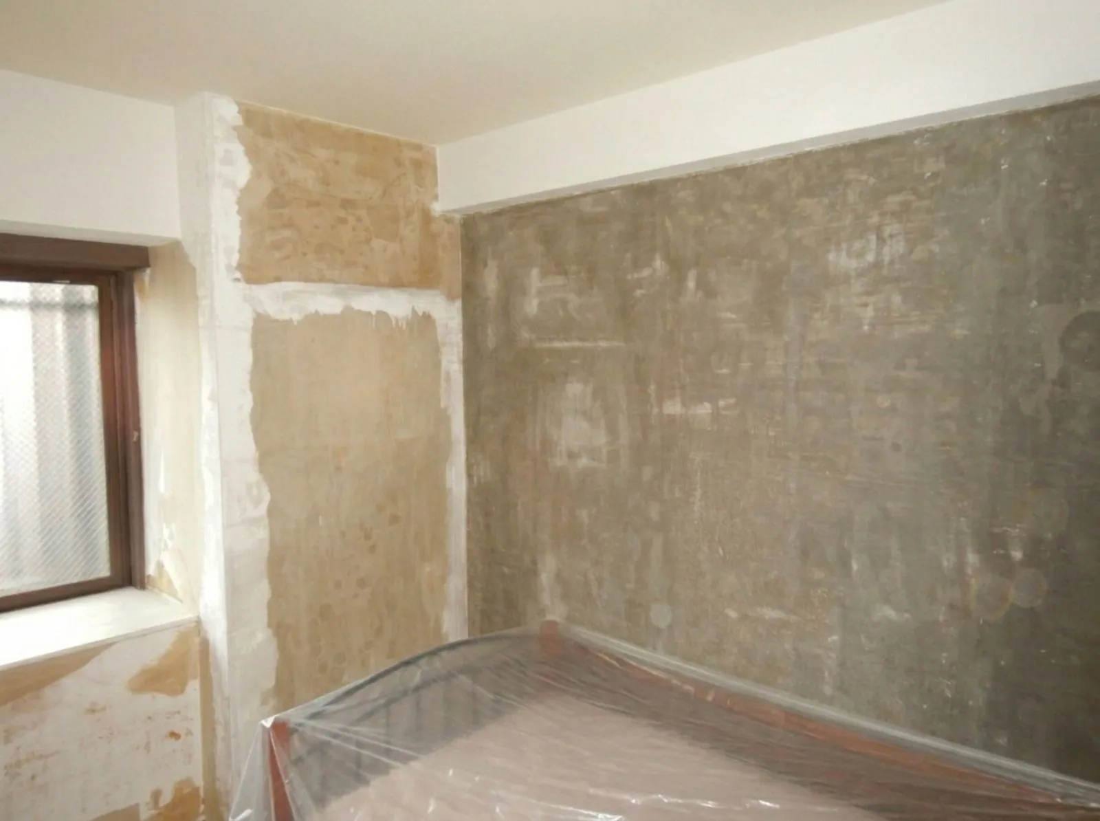 コンクリート直張り壁紙の壁紙を剥がした状態です。