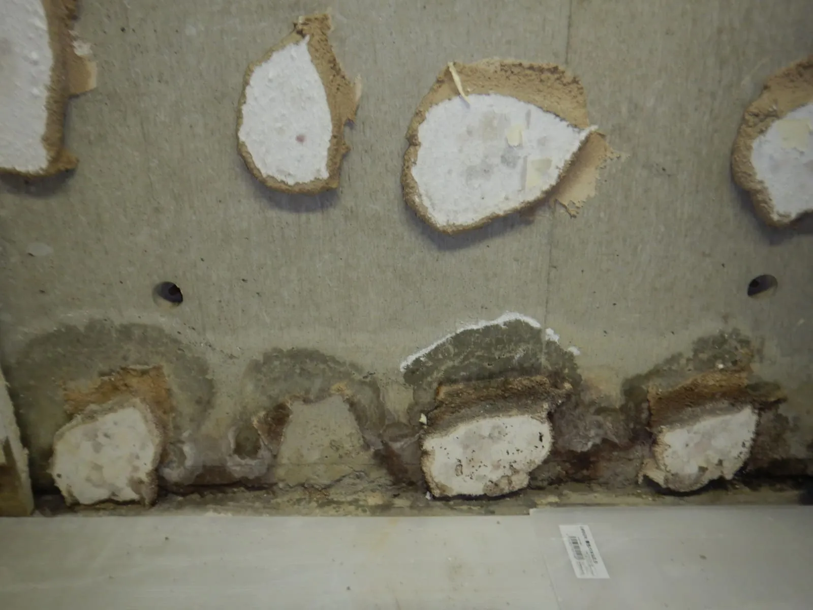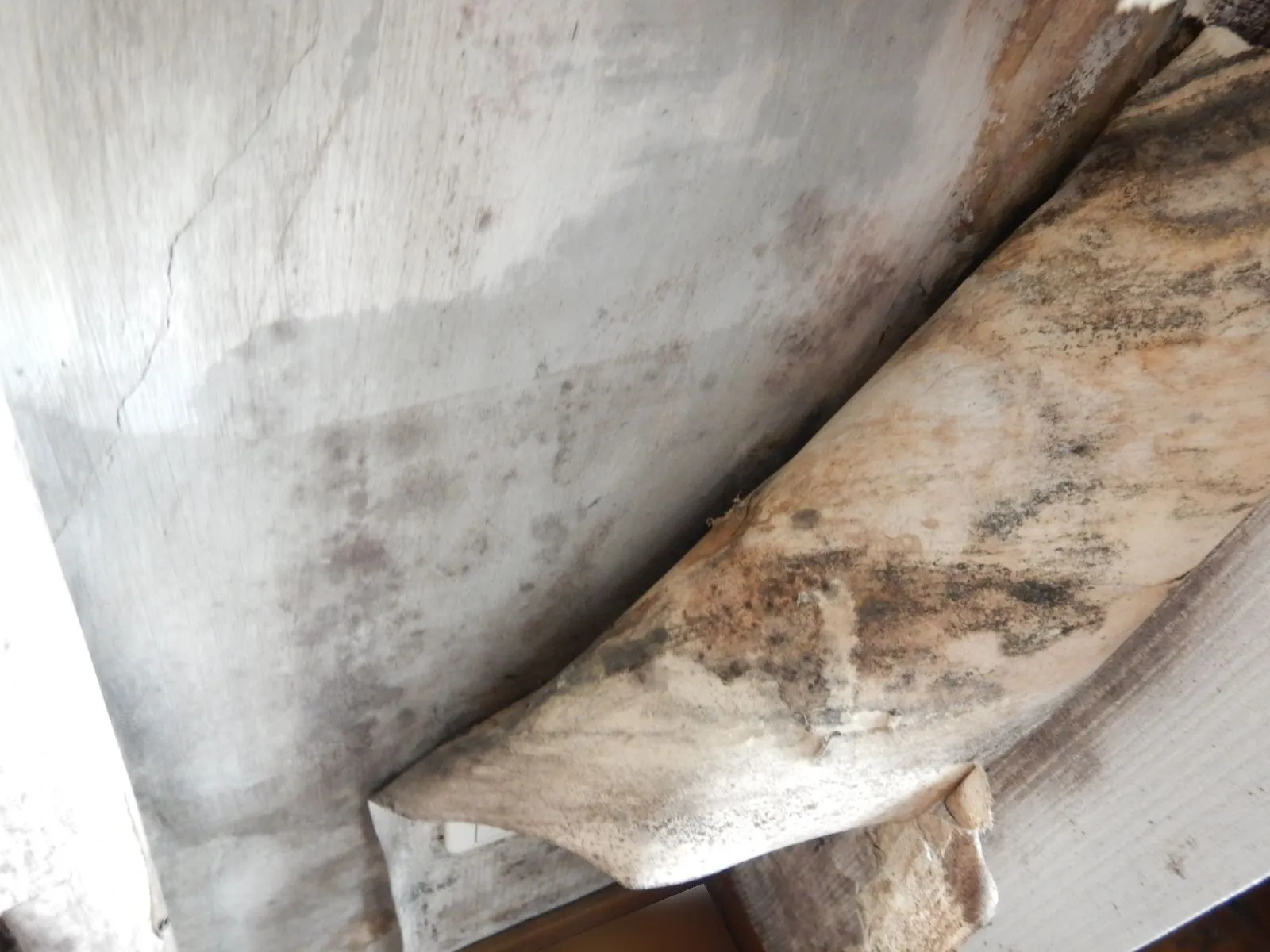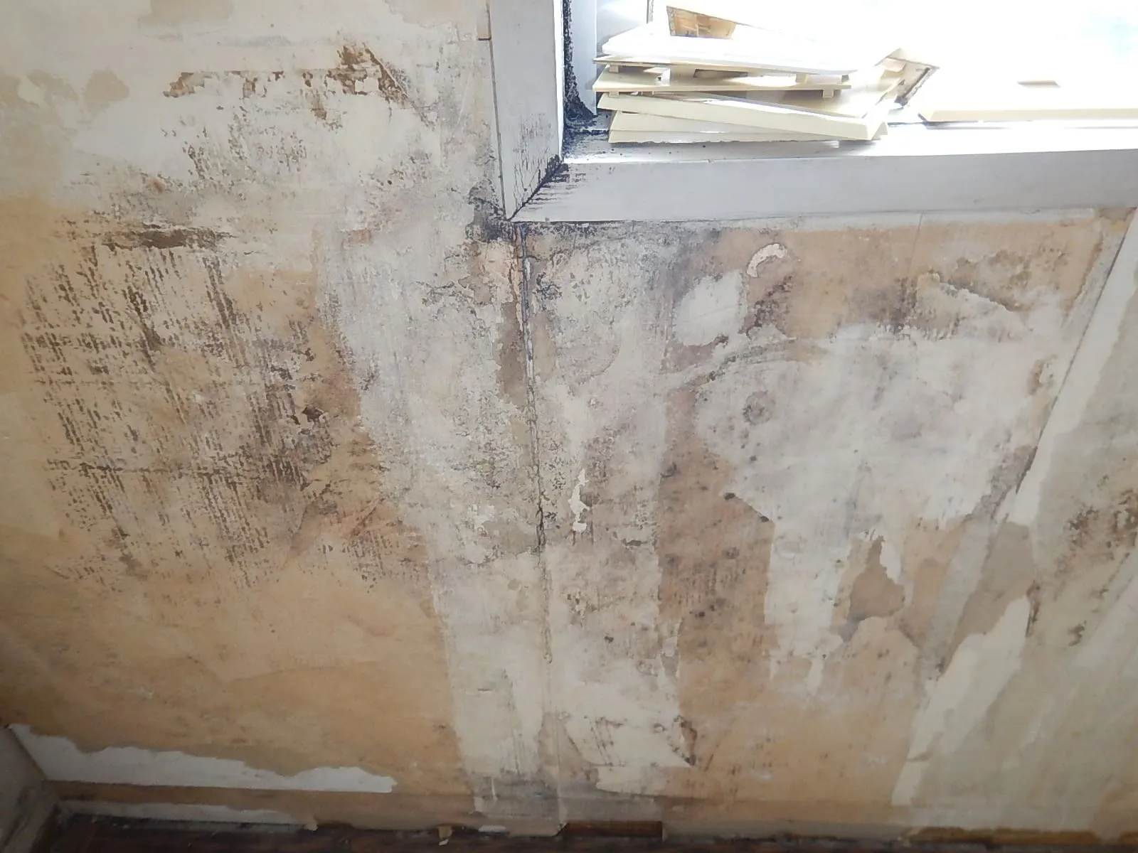 マンション外壁側のコンクリート直張り壁紙の黒カビ
