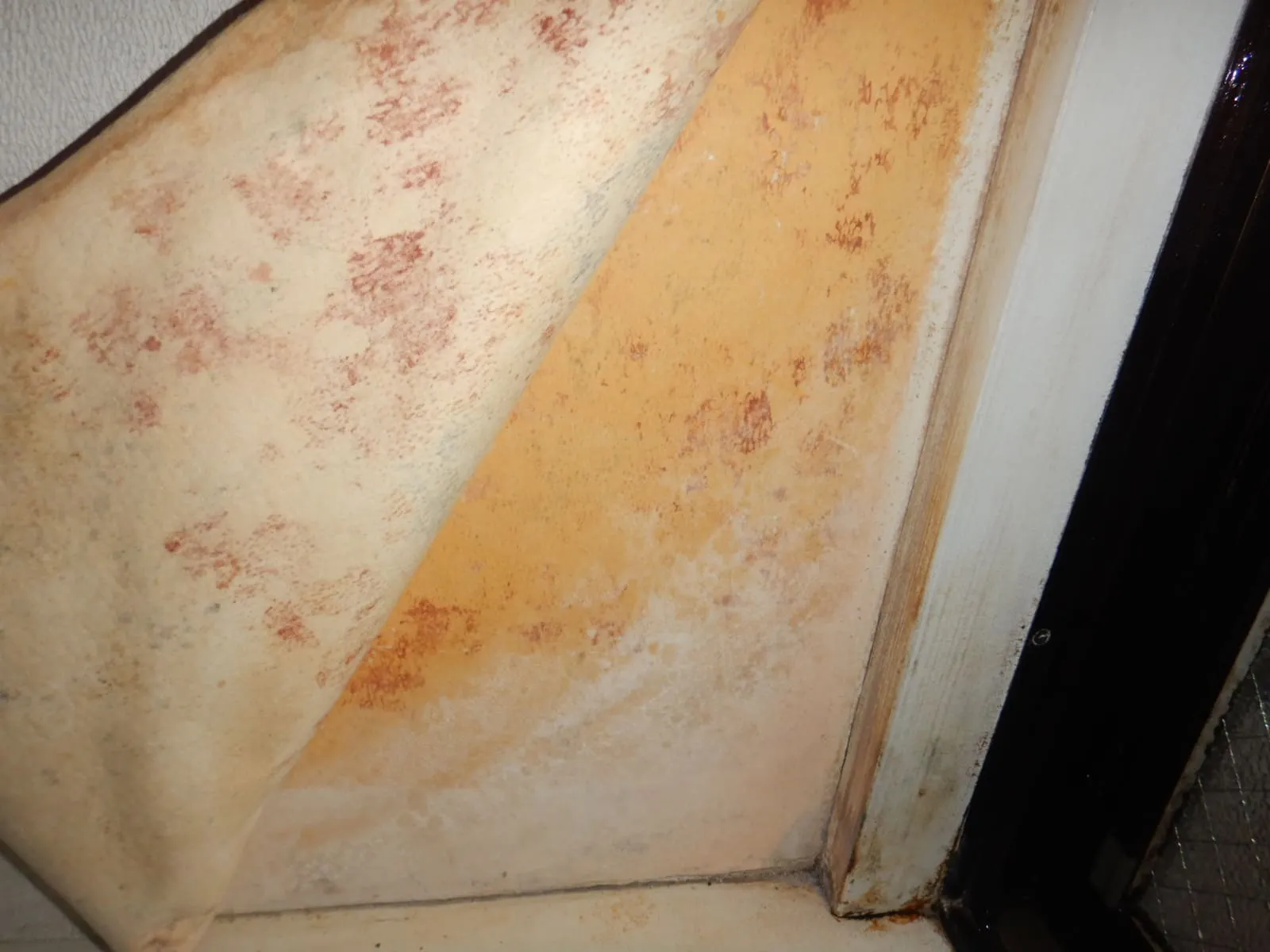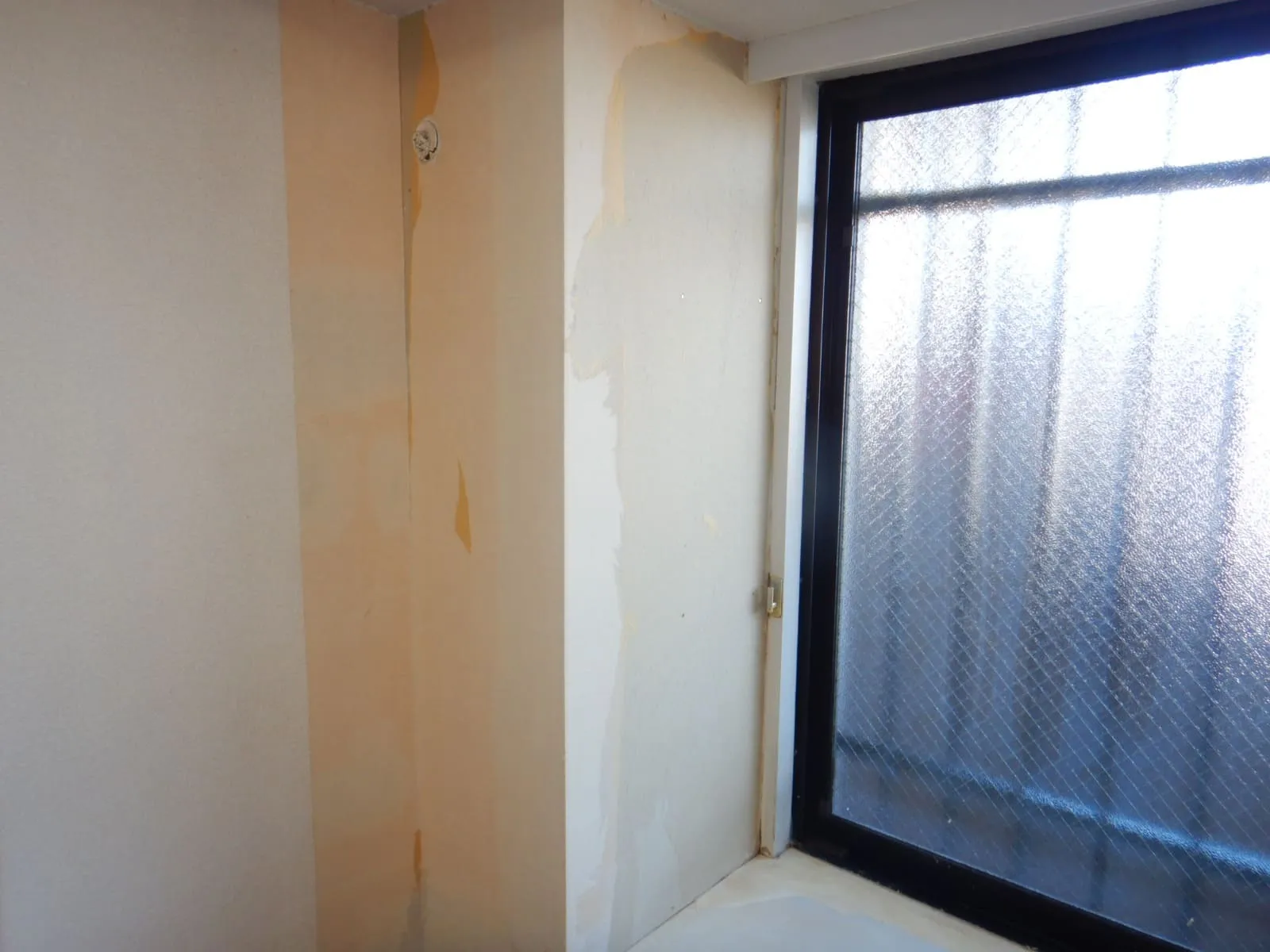 出窓まわりの壁紙変色は、石膏ボード下地でも起きます。
