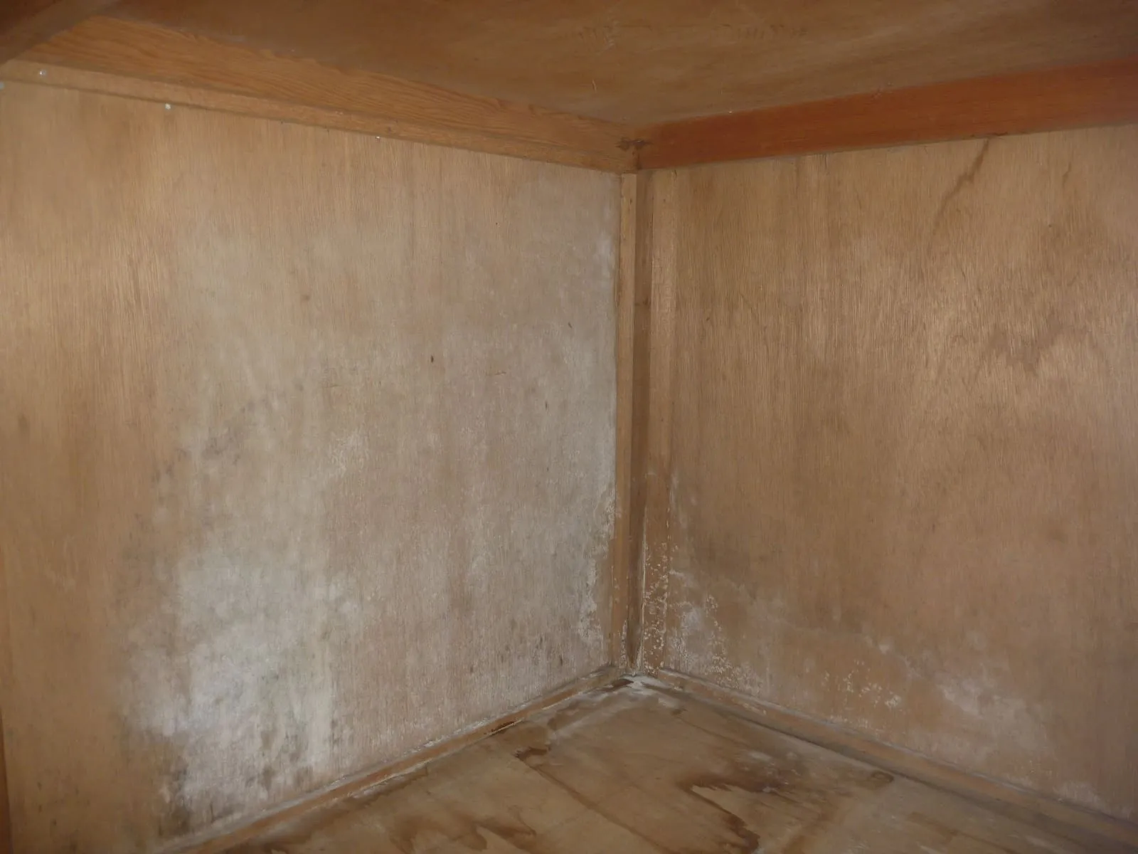 押入れの角と壁面に広がるカビ。