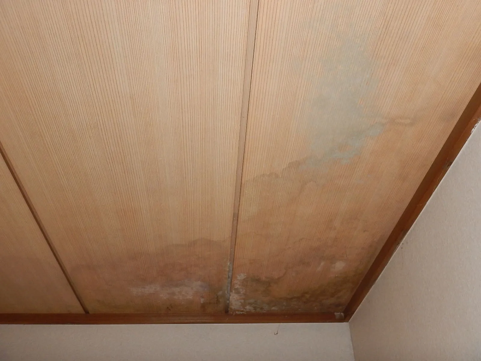 雨漏りや漏水が発生した和室杉柾天井のシミとカビです。