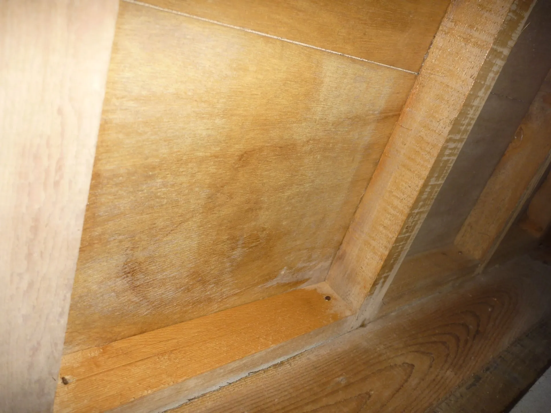 ところどころの床下合板に発生しているカビ。
