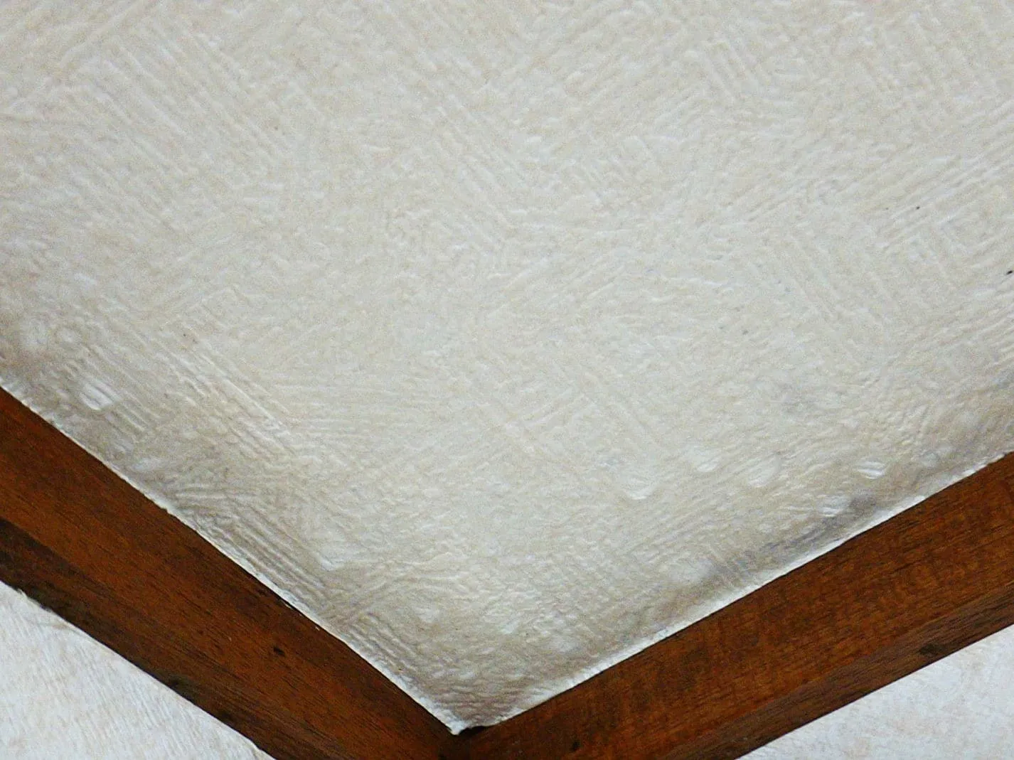コンクリートの上にモルタルで下地を作り、そのまま壁紙を張っている仕様です。