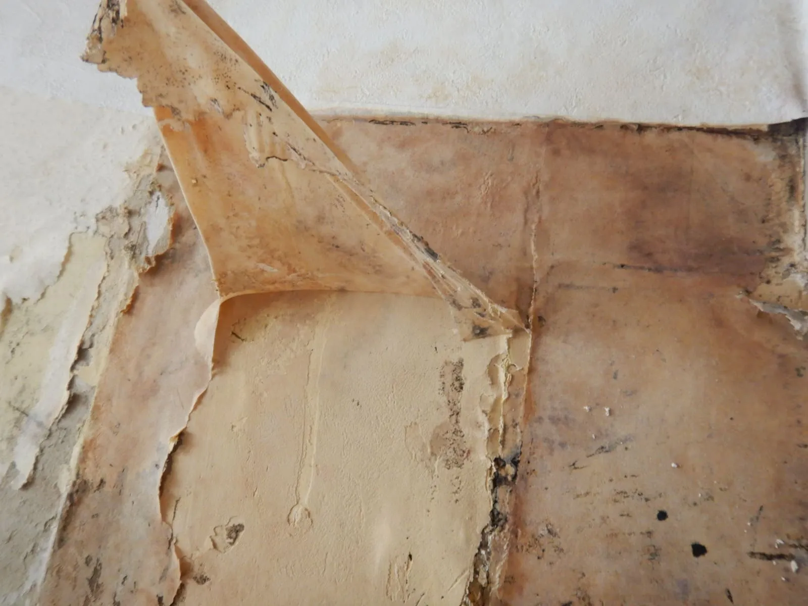 パテが浮いていたので剥がしてみたところ、下地にカビが広がっていました。