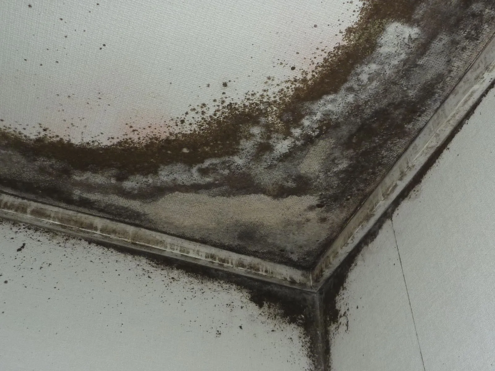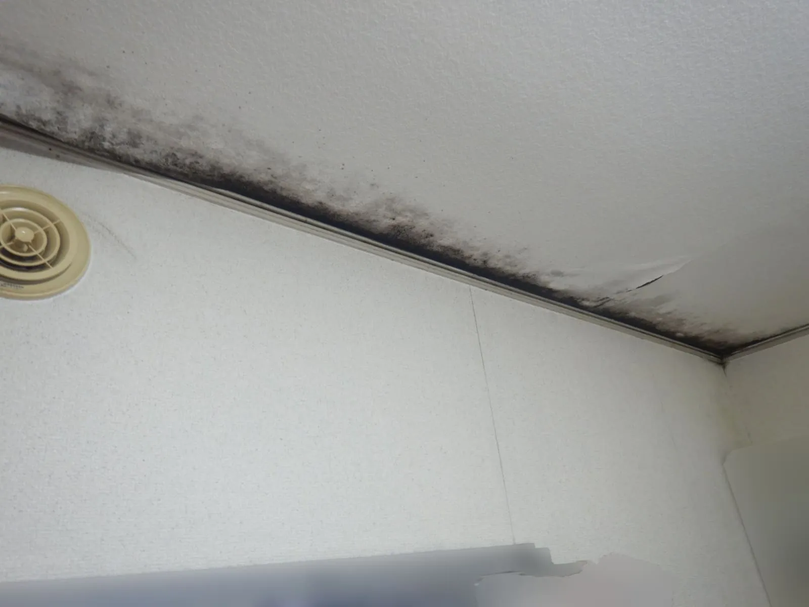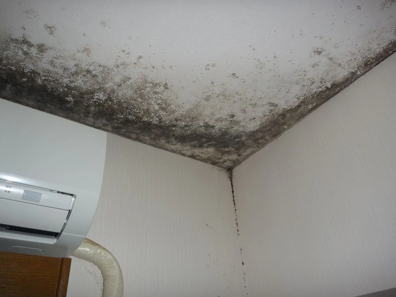 カビだらけの部屋の天井がコンクリート直張り壁紙(クロス)でした。