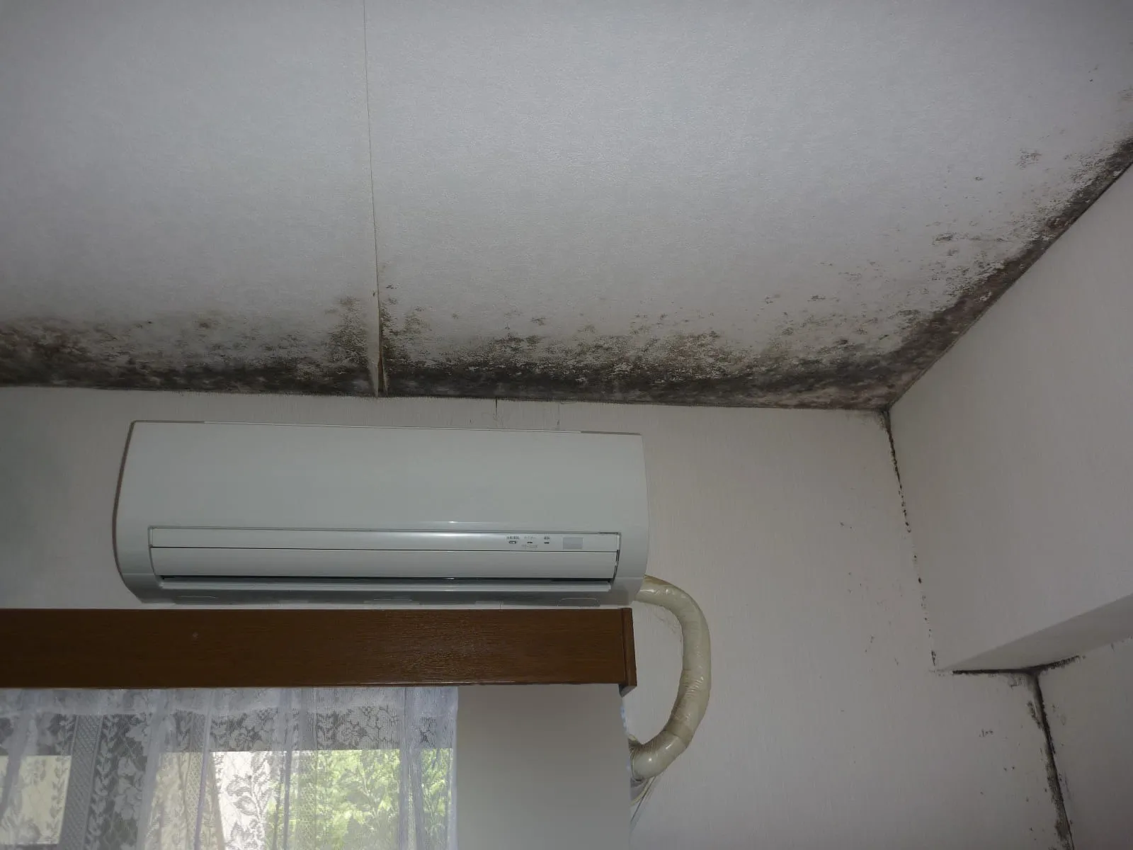 天井からのカビは呼吸域に滞留しやすく、目に見えない圧迫感や頭痛・倦怠感の原因となることもあります。